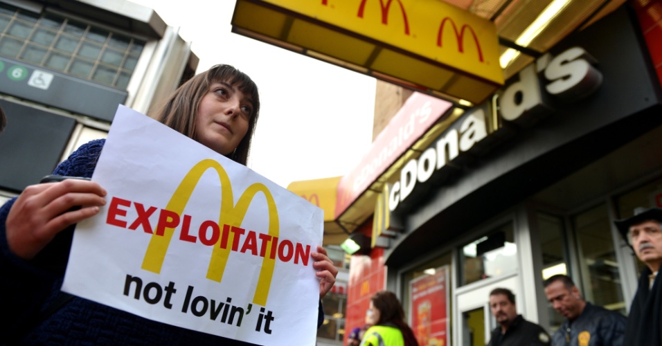 Trabalhadores de redes de fast food dos Estados Unidos reivindicam aumento do salário para $15 por hora. O piso atual definido pelo governo norte-americano é de $7,25 por hora Leia mais Spencer Platt/AFP