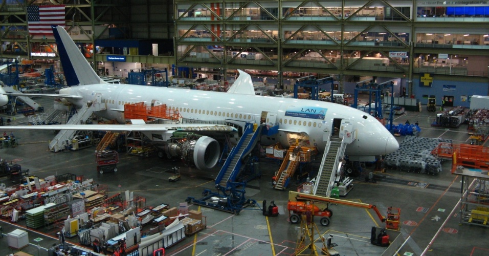 Avião 787, chamado de Dreamliner, é montado na fábrica da Boeing em Everett, na região metropolitana de Seattle (EUA), onde são produzidos também os modelos 747, 777, e 767 (este último de uso militar); o 787 foi lançado em 2004 e apresentado como uma inovação da indústria, com menos consumo e mais conforto, mas enfrentou defeitos. Clique nas imagens acima e veja mais Leia mais Armando Pereira Filho/UOL