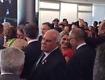 Acompanhada por diversas autoridades políticas do governo, dentre elas o procurador-geral da União, Rodrigo Janot, Dilma afirmou que a Petrobras é a principal empresa estratégica do país e a que mais emprega. "Temos que saber apurar e punir sem enfraquecer a Petrobras. [...] Ela tem capacidade de superar a crise e dela sair mais forte", disse.