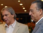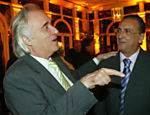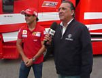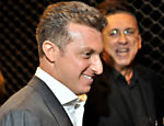 | Rubens Barrichello e Galvão Bueno no lançamento do livro do narrador em São Paulo