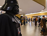 Boa parte do público vinha com roupas da saga –camisetas pretas com o logo em amarelo, blusas com estampa dos botões do robô R2D2–, dois com pantufas peludas de Chewbacca, enquanto pouco mais de uns 20 ousavam se fantasiar.