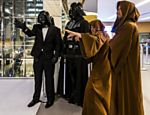 "Acho que vai ser legal. Tô esperando faz muito tempo", diz Luca, tirando o capacete de Darth Vader colocado sobre os óculos de aro azul para falar com a reportagem – ele era bebê quando o último dos "Star Wars" estreou nos cinemas, em 2005.