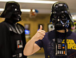 No shopping Metrô Santa Cruz, na zona sul da cidade, também houve fãs a caráter para a sessão da 0h01: Darth Vader reinava entre as camisetas, embora houvesse também quem trajasse de mestre Yoda e Han Solo. Um casal se maquiou de Darth Maul, vilão de "A Ameaça Fantasma" (1999). Quem vinha mascarado recebia pedidos de fotos.