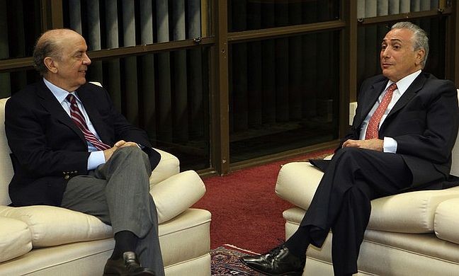 José Serra, Ministro de Estado das Relações Exteriores, e Michel Temer, presidente da república em exercício (Foto: Gustavo Miranda / Agência O Globo)