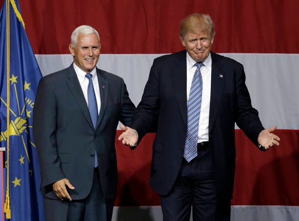 Presidente dos EUA, Donald Trump (dir.), ao lado de seu vice, Mike Pence