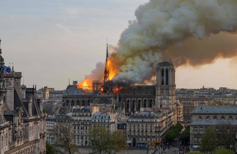 As chamas e o rolo de fumaça que envolveram Notre-Dame impactaram o mundo com a perspectiva de que a beleza e opulência da catedral de Paris pudessem virar cinzas. Foto: Fabien-Barrau/AFP