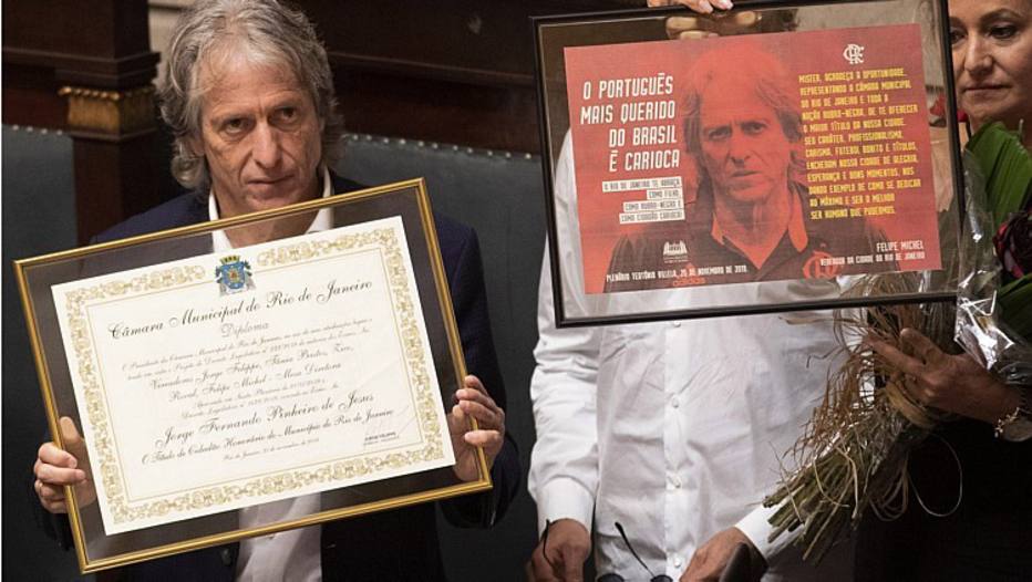 Em uma sessão que durou mais de duas horas e que foi recheada por discursos de exaltação ao Flamengo, o técnico português Jorge Jesus recebeu o título de Cidadão Honorário Fluminense - que todos no Rio chamam de Cidadão Carioca - da Câmara Municipal. A homenagem fez o treinador se emocionar. Em seu discurso, ele agradeceu o carinho que tem recebido no Brasil, que disse sempre ter aprendido se tratar de "um País irmão".