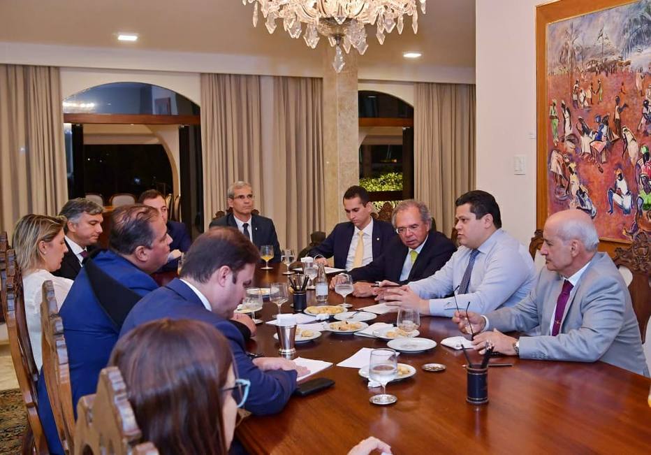 Equipe econômica do governo Bolsonaro, chefiada por Guedes, à mesa com congressistas discutem termos do tal Orçamento impositivo pretendido por Alcolumbre. Foto: Agência Senado