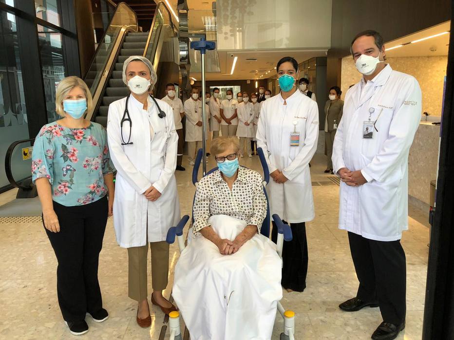 Aos 97 anos, Gina Dal Colleto recebeu alta do hospital neste domingo, após se curar do novo coronavírus. Ela estava internada desde o dia 1º de abril no Hospital Vila Nova Star, da Rede D’Or São Luiz, em São Paulo.